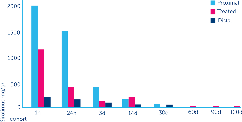 DTF labelled Sirolimus was used to assess the drug distribution following DCB treatment*