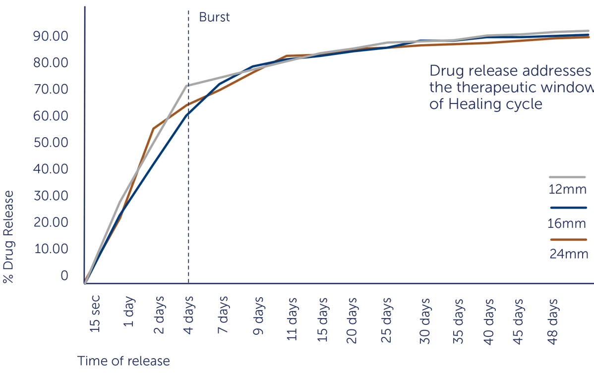 Biodegradable Drug Polymer matrix completely degrades in 6-7 months and converts to BMS thereby reducing late complications